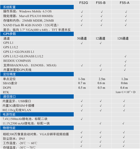F52/55是公司2013年推出的全新掌上GIS/RTK测量系统,具备高精度、高性能、轻便易用的特点,可同时满足GIS数据采集和RTK测量要求。