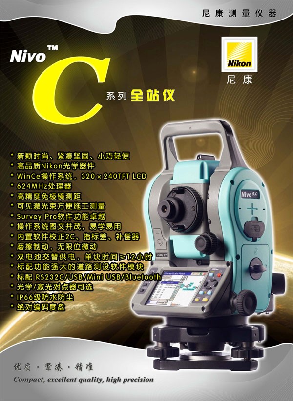 两种Nivo系列绝对是多用途测量工具中的佼佼者。这些全站仪结构紧凑,重量轻,便于长途携带。所有Nivo型号均采用享有盛誉的Nikon高透度光学器件,在晴朗和亮度小的天气条件下均能获得更清晰的图像,使测量变得很容易,测量员的眼睛不会感到不适。